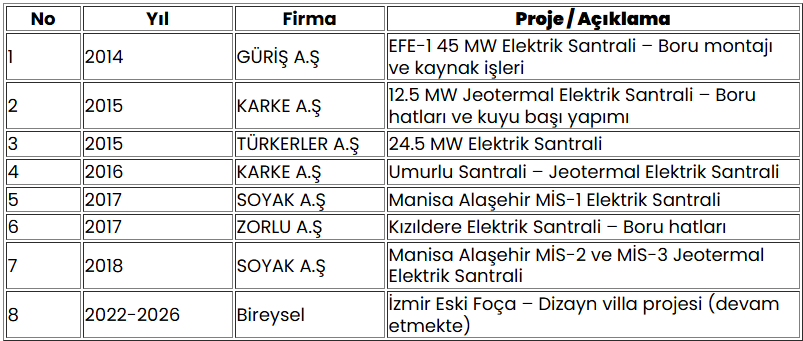 Kurulduğumuz günden bu yana enerji santralleri, endüstriyel tesisler, fabrika kurulumları ve çeşitli şantiye projelerinde aktif rol alarak, projeleri zamanında ve eksiksiz teslim etmenin gururunu yaşıyoruz. Çelik imalat, boru montajı, argon ve elektrik kaynak uygulamaları dahil olmak üzere sektörün tüm alanlarında uzman kadromuzla çözüm üretmekteyiz.